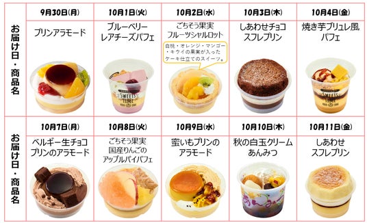 「ちょこっとスイーツ」は株式会社ドンレミ―と提携し、商品の選定を「ワタミの宅食」で行います。商品は2週ごとに10商品を用意し、定番で人気の「プリンアラモード」などは繰り返し提供するほか、季節ごとのフルーツを使用したスイーツを取り入れます。