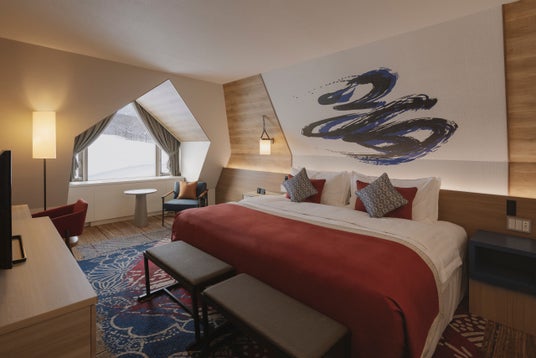 ロビーに一歩足を踏み入れると、北海道の文化とコンテンポラリーなムードが見事に共存した空間が広がります。北海道キロロの雄大な自然と呼応するような温かいカラーパレットは、シックな雰囲気の中でバカンスを過ごすハイエンドな美学とカジュアルな心地よさを同時に叶えます。