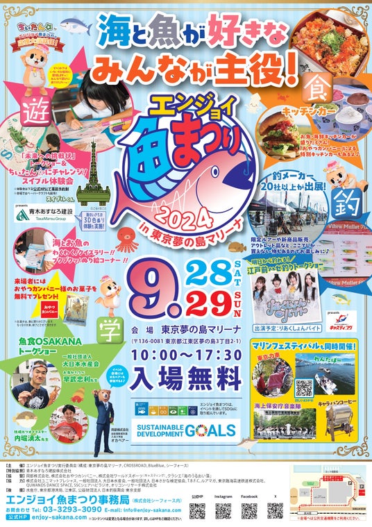 「エンジョイ魚まつり」は、SDGs目標14「海の豊かさを守ろう」の推進を目的に2022年に第1回を開催。「食:魚を食べる」「遊:魚と遊ぶ」「釣:釣り」「学:学ぶ」の4つのテーマで、トークショーやワークショップの実施、クイズラリーやシンポジウムの開催など、家族揃って遊びながら海や環境について学び、「海の魅力」を満喫できる体験型イベントです。