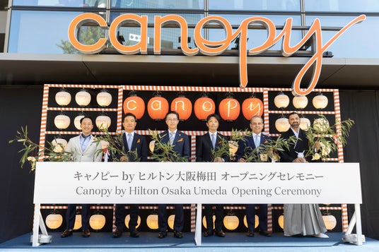 9月26 日(木)10時より、ホテル1階にあるカフェ「Bean there, UMEDA(ビーンゼア うめだ)」前にてオープニングセレモニーを実施しました。ヒルトン 日本・韓国・ミクロネシア地区代表 ジョセフ・カイララは、「ユニークかつエネルギッシュな都市で有名な大阪の地で、素晴らしい眺望を誇るグラングリーン大阪に『キャノピーby ヒルトン』のブランドが誕生したことを大変嬉しく思います。」と開業に当たっての想いを述べました。ご来賓の方々を代表して、株式会社日建設計 常務執行役員 大阪オフィス代表 設計グループ代表 勝山太郎氏にもご出席いただき、ご祝辞を頂戴した後、総支配人スリジャン・ヴァデラは、「キャノピーby ヒルトン大阪梅田は、単なるデスティネーションではなく、数え切れないほどのストーリー、コラボレーションを生み出す場」と述べ「当ホテルが誰もが楽しめる活気あるコミュニティ・スポットになることを願っています。」と展望を語りました。最後に当ホテルのオーナー企業を代表してオリックス不動産株式会社 専務執行役員 高橋豊典氏がご挨拶しました。その後、開業を記念し、登壇した6名による「福笹飾りセレモニー」が執り行われました。大阪の魅力をアップデートし発信するキャノピーby ヒルトン大阪梅田は、大阪ならではの幸せを象徴するお祭りである十日戎の「福笹」をモチーフに、当ホテルとお客様そして大阪の街に幸せが訪れますように、と願いを込めセレモニーを行いました。登壇者はそれぞれ、えびす鯛や福槌などの縁起物の「お飾り」を笹に飾りました。