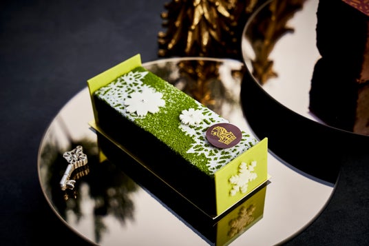 抹茶のグリーンカラーと純白のスノーフレークでクリスマスツリーをイメージ。ホワイトチョコレートのコク深さと抹茶の絶妙なマリアージュが口の中に広がり、心地よい甘さと苦味の余韻が楽しめます。