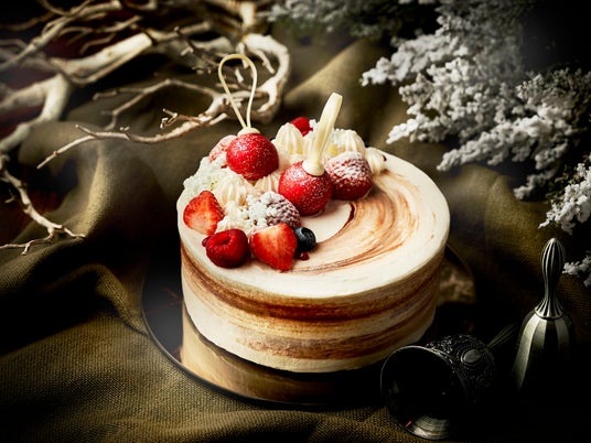 毎年一番の人気を誇るショートケーキ。しっとりときめ細かなスポンジに、ミルクの風味が際立つ生クリームとフレッシュいちごをたっぷりとサンドしました。トップにはホワイトチョコレート製のオーナメントボールやベリーをあしらい、チョコレートで木目を表現。シンプルな中にパティシエの技が光る繊細な味わいをご堪能ください。