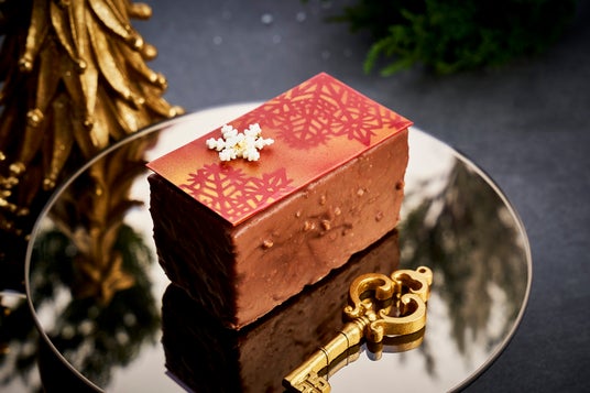 チョコレートとベリーの苦み・甘み・酸味のバランスが絶妙な、大人のためのダークチョコレートケーキ。濃厚なダークチョコレートムースやバニラシャンティ―、ベリージュレなどを繊細に重ね合わせ、ボトム部分のダークチョコレートクランチが食感のアクセントに。雪の結晶やオーナメントボールが目にも美しいケーキで、クリスマス気分を存分にお楽しみください。