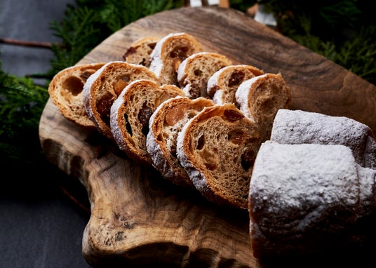 ドイツで生まれたクリスマスの伝統菓子。国産小麦をシェフ フレデリックが起こした天然酵母で熟成させた生地に、バターや国産柑橘類(デコポン・甘夏・レモン)を使ったホテルメイドのコンフィ、香ばしいナッツなどをたっぷり練りこみました。生地の豊かな風味にフルーツやナッツ、スパイスが見事に調和した味わいが魅力です。