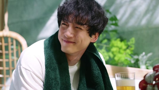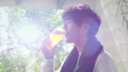 昼下がりのシャワーでご機嫌な坂口さん。「いい天気だし、飲んじゃいましょう」と冷蔵庫から「グリーンズフリー」を取り出す坂口さんの様子を見て、「あれ、まさかノンアル?」と不思議そうな彼女。坂口さんは「この気持ちよさ知ったら変わるから」と「グリーンズフリー」をグラスに注ぎ、機嫌よくおいしそうに飲みます。坂口さんの爽快な飲みっぷりに誘われ、今までノンアルに抱いていた気持ちが変わって、自分も飲みたくなってしまう彼女。二人並んで縁側に座り、仲良く「グリーンズフリー」を飲む様子で、これからのノンアルの楽しみ方を伝えます。
