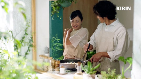 ちょっと頑張った後のお気に入りのランチ。冷蔵庫から「これこれ」と「グリーンズフリー」を取り出し、食卓に並べる菅野さん。「えっ、ノンアル?」という夫からの問いに、「ちょっと頑張ったときにはこれがいいんだよ」と言いつつグラスに注ぎます。ノンアルだからと「思い込みに縛られてると人生損するぞー」と言いながら、おいしそうに「グリーンズフリー」を飲む菅野さんの様子に、今まで抱いていたノンアルへの思い込みを覆される夫。二人仲良く「グリーンズフリー」を楽しむ姿を通じて、これからのノンアルが生み出すおいしく楽しい時間が描かれています。