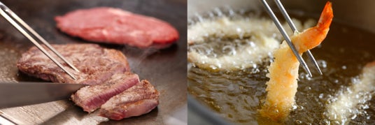 国産ビーフステーキの鉄板焼き / 天ぷら
