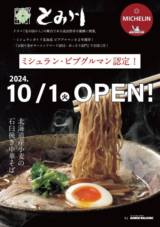10月1日から「POPUPラーメン」の第6弾としてミシュランガイド北海道2012、2017掲載店「富良野とみ川」が出店いたします。