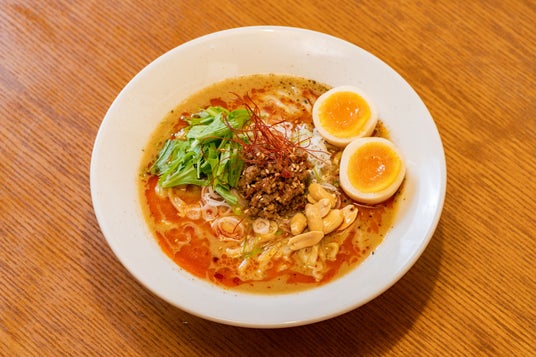 自家製の白ゴマペーストに中国山椒の風味の効いた特製辣油が合わさりコク深い麻辣な辛さの担々麺に仕上げております。