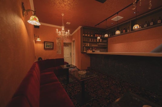 フカフカの赤いソファは長時間座っても居心地がよく、シャンデリアやステンドグラスから照らされるオレンジ色の光が、周囲に気を使わずにリラックスできる雰囲気を演出。また、カウンターや小さなテーブル席の程よく、適度なプライバシーを保ちながらも、近い距離で他のお客さんと親密な交流ができる空間になっております。