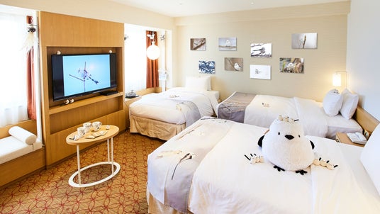 お部屋はゆったりとした広めのツインタイプ。ベッドを追加する事で最大3 名様までご宿泊いただけますので、シマエナガファンの皆様はもちろん、家族旅行やご友人との旅行・女子旅など、多彩なシーンにあわせてご利用いただけます。