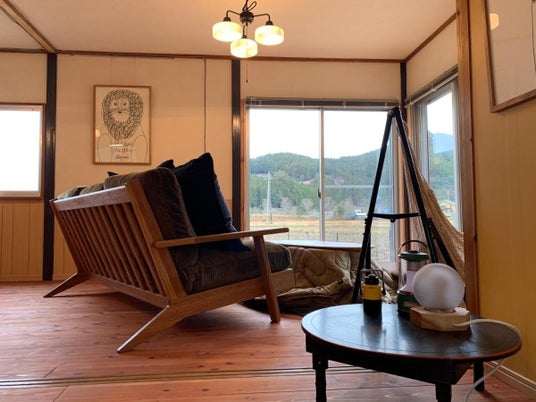 熊野古道の人気のエリア、たかはらに近く、実家に来たように寛いでもらえる畳の部屋とリビングの窓から山里の風景を楽しんで貰える1棟貸し古民家リノベーションの宿。