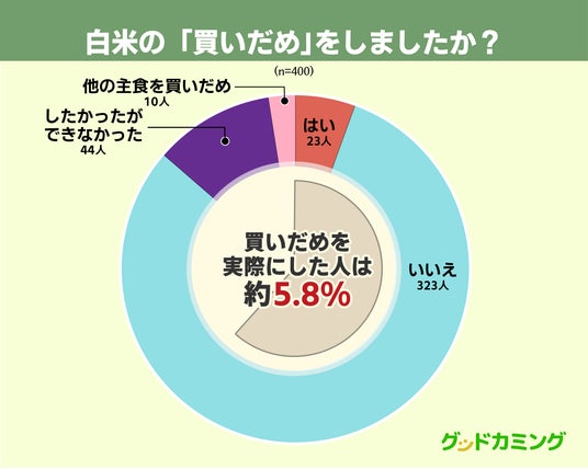 今回のアンケート回答者のうち、実際に買いだめを行なったのは約5.8%(23人)にとどまりました。