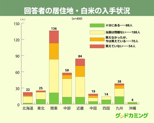 アンケートに回答した400名に対して、白米の入手状況について質問しました。