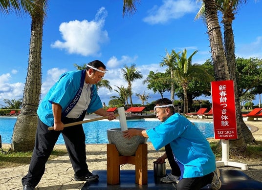 ホテル日航アリビラ(沖縄県 読谷村/総支配人:中島 浩一)は、2024年12月26日(木)から2025年1月7日(火)まで、ホテル正面玄関にお正月装飾を施し、お客様をお出迎えいたします。また、2024年12月31日(火)は、年忘れお楽しみビンゴやカウントダウン打ち上げ花火、2025年1月1日(水・祝)と1月2日(木)は琉球舞踊鑑賞や餅つき体験など、年末年始にご家族で楽しんでいただける多彩なイベントを開催いたします。