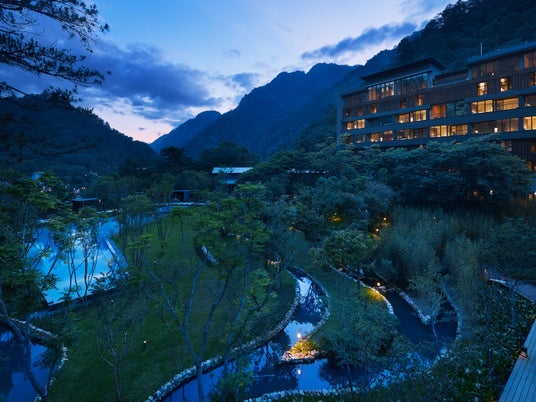 約 3,000m 級の山々が連なる台湾雪山山脈の麓にある温泉地・谷關(グーグァン)。源泉掛 け流しの半露天風呂付客室、風と水を感じる開放的なパブリック空間、滞在シーンに合わ せた料理など、谷關の自然に憩う温泉リゾートです。