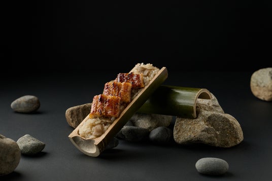 日本の蒲焼の技法で焼き上げた鰻を、竹筒のご飯に入れて蒸し上げました。竹筒を開けると、香ばしい蒲焼と竹の香りが広がります。
