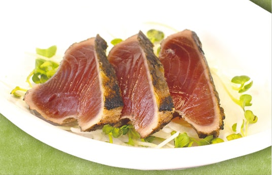 新鮮な真鯛に、ピリッと辛みの効いた海苔唐辛子をトッピング。さっぱりとした味わいです。