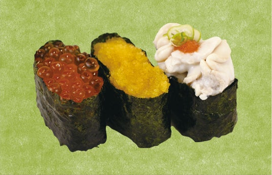 秋の味覚を盛り込んだ三種類の軍艦寿司。季節感を存分に味わえる逸品です。