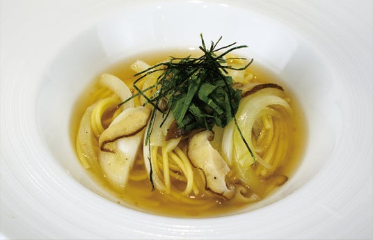 さっぱりとした梅としその風味が効いたスープスパゲティ。軽くて食べやすい一品です。