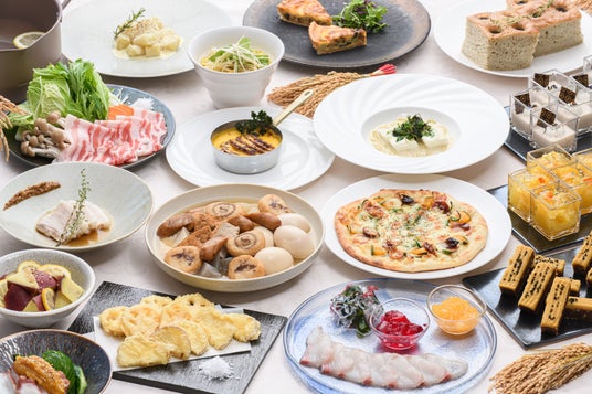 黒豚しゃぶしゃぶ レモン塩仕立て、日置の麦味噌おでん、日置野菜の天ぷら、鹿児島県産白身魚の蒸し焼き 日置深葱のクリーム煮、日置さつまいもニョッキ、日置産温州みかんと不知火のジュレ、天然あま塩と安納芋のブラウニー、日置野菜のピザ など 約70種類