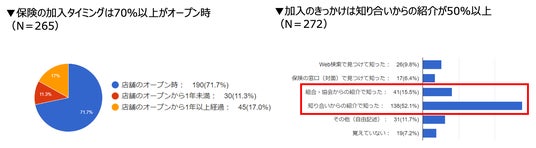 プラットフォームとして新たなサービスを提供できないかと考え、飲食店の運営時に発生するリスクに備えられる損害保険の販売の検討を開始しました。登録ユーザーにアンケートを実施した結果、火災保険以外の損害保険に加入していない飲食店が約3割あること、そして保険加入のきっかけは約5割が「知り合いの紹介」など、飲食店の保険サービスの加入について情報が不足している現状が明らかになりました。*1