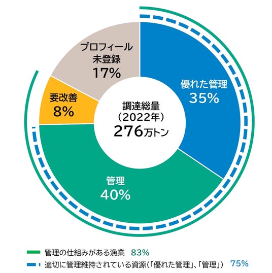 ・適切に維持管理された漁業によるもの(75%)は、前回の71%から4%増加しました。