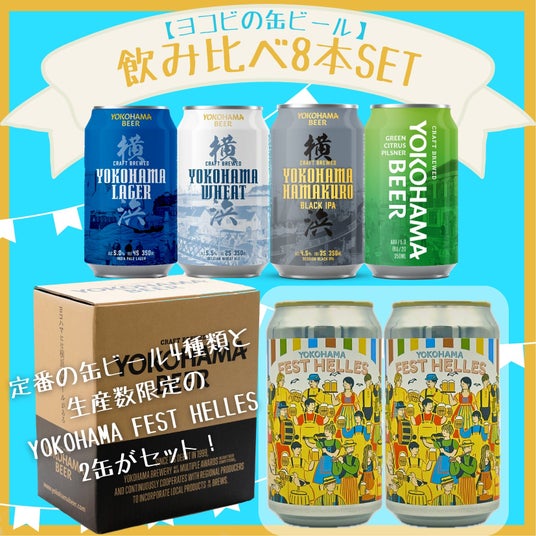 通販サイトでは『YOKOHAMA FEST HELLES』 2缶と、人気の定番缶ビール4種がセットになった飲み比べBOXとして販売!限定ビールと人気の缶ビールを飲み比べながらお楽しみ頂けます。