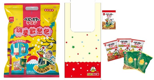 ベビースターキャラクター「ホシオくん」のかわいいエコバッグ入り!おなじみのベビースターラーメンチキン味だけでなく、日本らしいわさび味のベビースターも入った期間限定のバラエティパックです。