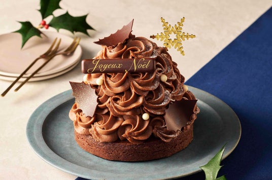 柊をあしらったショコラとキャラメルマロンのモンブラン。ショコラサブレにキャラメルムース、渋皮栗入りクリームを重ね、ショコラマロンクリームを絞りました。コク深いキャラメルと風味豊かな栗の味わいが広がります。