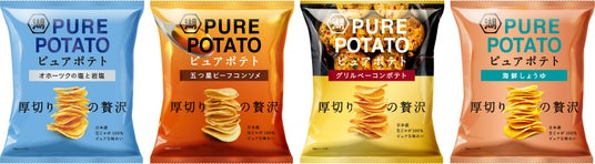 じゃがいも本来の濃い味わいとホクホク感により“圧倒的じゃがいも感”が楽しめるポテトチップス「ピュアポテト」は、9月23日(月)よりフルリニューアルし、「オホーツクの塩と岩塩」、「五つ星ビーフコンソメ」、「グリルベーコンポテト」、「海鮮しょうゆ」の4品で展開しています。“厚切りの贅沢”をテーマに、より魅力的に感じていただけるようなブランドへと進化を遂げました。
