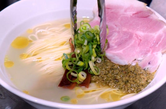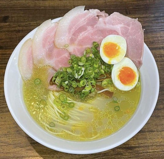 鯛白湯らーめん静岡県産や愛媛県産の真鯛を100%使用した白湯スープは、焼き魚のような香ばしい風味とまろやかなクリーミーさが特徴。