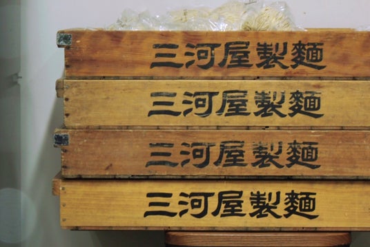 麺三河屋製の特製麺は、スープと完璧に絡み合う滑らかな食感が特徴。ラーメンの味わいを引き立てます。