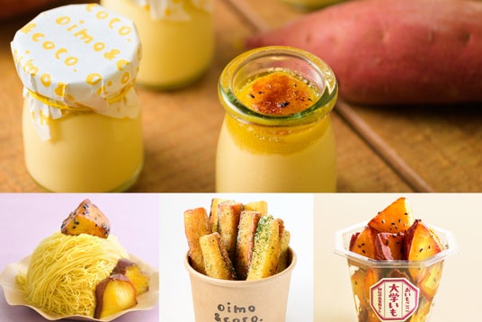 素材そのままの焼き芋になによりもこだわりつつ、高品質のさつまいもを使用したスイートポテトや焼き芋プリン、焼き芋モンブラン、大学芋、焼き芋スティックフライなど、多彩なさつまいもスイーツを展開していることも「oimo&coco.」の魅力のひとつです。