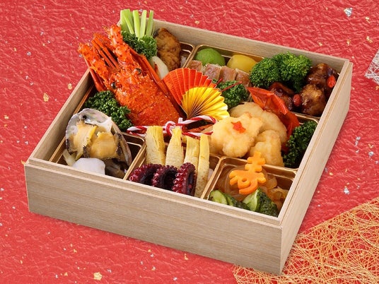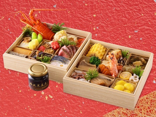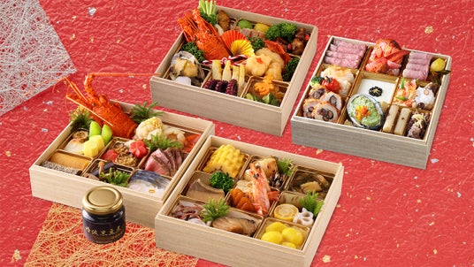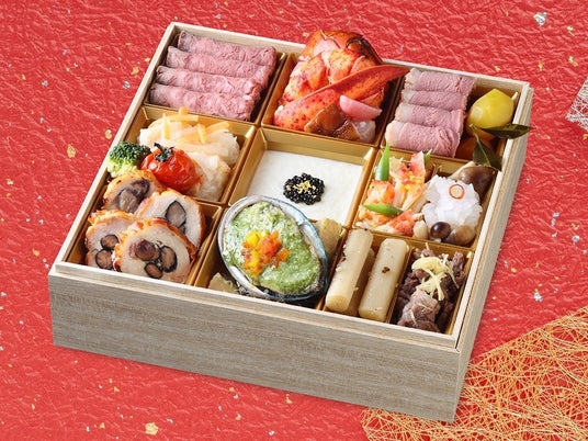 新しい年の幕開けを祝い、ご家族をはじめ大切な方々とともに温かい食卓を囲むお正月。皆様の幸多き一年を願い、日本料理・西洋料理・中国料理、それぞれの料理長が一品一品手間を惜しまず丹精を込めて仕上げた特製おせち料理をご用意します。新年を祝う祝賀の膳は、縁起の良い食材に加え、伊勢海老、アワビ、黒毛和牛といった豪華な食材をふんだんに織り込み、慶びの日に相応しい華やかな料理を詰め合わせました。