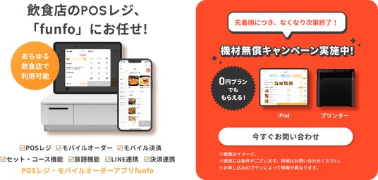 飲食店のためのPOSレジ + モバイルオーダーアプリ「funfo」を開発するファンフォ株式会社(代表取締役:喬 恒越、本社:京都府京都市下京区)は、2024年10月1日から数量限定で機材無償キャンペーンを追加で実施することをお知らせいたします。
