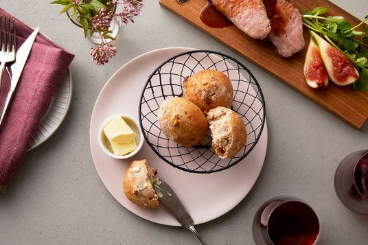 いちじくとクルミのパンは、チーズや濃厚なソースとの相性が良く、お肉料理におすすめです。はちみつやクリームチーズを付けるとより深みのある贅沢な味をお楽しみいただけます。