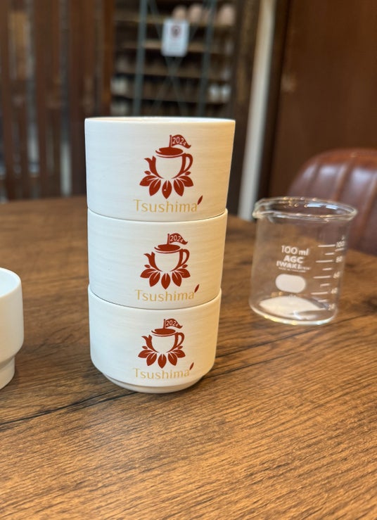 対州長石を使った、スタッキングができるオリジナル記念テイスティングカップ
