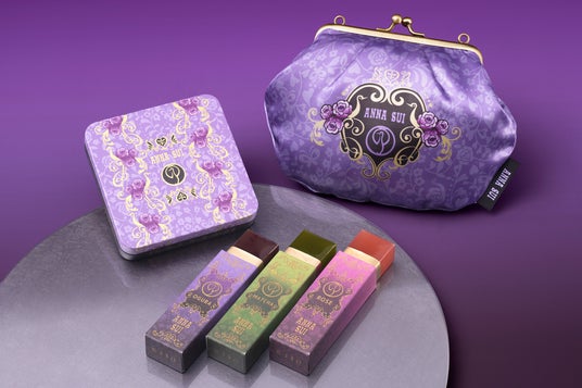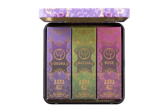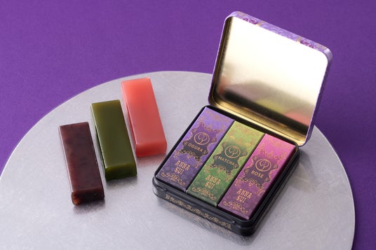 鶴屋吉信の人気商品「鶴屋吉信ようかん」は、伝統の美味しさを手のひらサイズで楽しめる、ミニサイズの羊羹シリーズです(通年販売5種)。今回は定番の「小倉」「抹茶」に、ANNA SUIを象徴するモチーフからインスピレーションを得た新作「ローズ」をくわえた3種の風味をご用意。ANNA SUIデザインのオリジナルパッケージで包み、限定デザインの缶ケースに収めて数量限定で販売いたします。