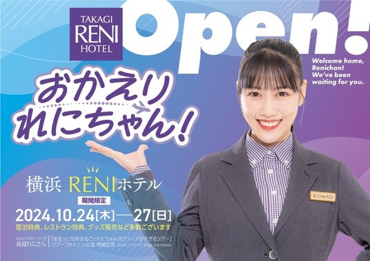 横浜東急REIホテル(神奈川県横浜市西区みなとみらい・総支配人 北村 裕二)では、昨年3月、6月と2度にわたり開催し大好評だった「ももいろクローバーZ」高城れにさんとのコラボ企画「RENI(れに)HOTEL」を今年も実施することを決定しました。コンセプトは「おかえり れにちゃん!」。高城さんご本人も監修の企画を、宿泊・レストランにて実施。開催期間は、2024年10月24日(木)~27日(日)。宿泊プランのご予約は、2024年10月4日(金)13時より承ります。