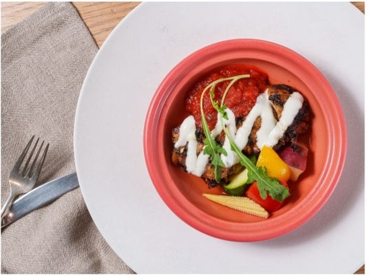 愛知県奥三河高原で育った銘柄鶏をコリアンダー、クミン、カルダモン、パプリカ等のスパイスで漬け込みタジン鍋にて蒸し焼きにしました 。ヨーグルトのソースとトマトのソースでさっぱりとお召し上がりいただけます。