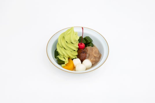 『お茶漬け 茶 甘味 山本山』の人気メニュー「抹茶クリームあんみつ」の秋限定バージョンは「栗」。自家製の栗あんと、栗の渋皮煮が抹茶の旨みをさらに引き立てます。