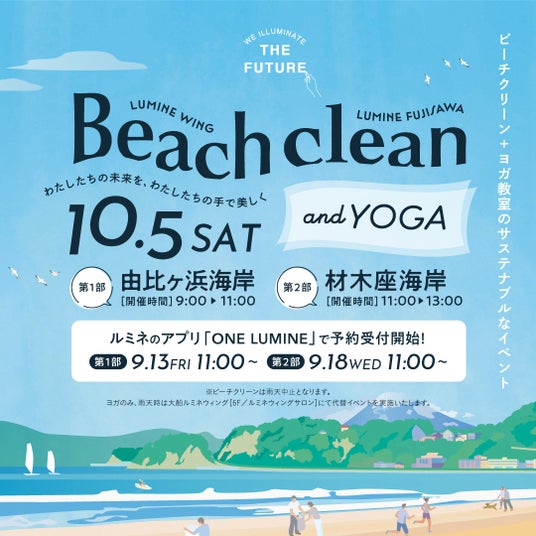 - 大船ルミネウィング・ルミネ藤沢「BEACH CLEAN and YOGA」“自分の手できれいにしたビーチで、ヨガ体験によるクリーンな心と身体づくりを”