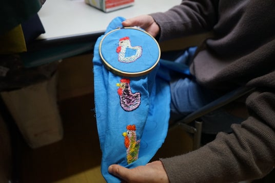 刺繍アートの創作風景