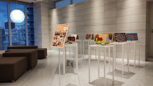 最上階の20Fレセプションのスペースにて、「アート・メープルかれん」で創作活動を行っているアーティストの絵画、手織り、刺繍などの作品を展示及び販売。「アート・メープルかれん」の活動紹介も行います。