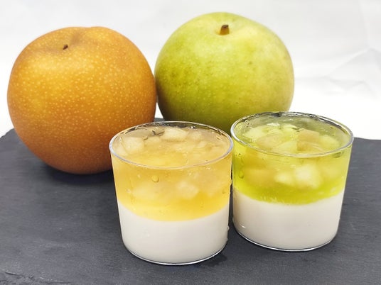 JU米子高島屋(所在地:鳥取県米子市角盤町1-30)では開店60周年に際し、食の宝庫でもある鳥取県の特産品を使用したオリジナル商品の開発に注力しております。このたびJA鳥取中央東郷梨選果場様とコラボレーションし、鳥取県の特産品である「梨」の活用方法がないかと思案し、サイズ不揃いの梨をJA鳥取中央東郷梨選果場様よりご提供いただきジュレコンポートに加工、新スウィーツを開発、販売を開始いたしました。