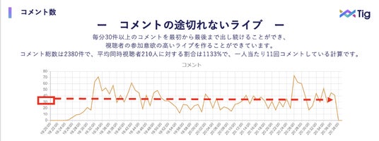 視聴者コメントが、毎分約30件以上となり、視聴者1人当たり平均11回もコメントしています。