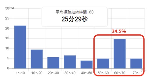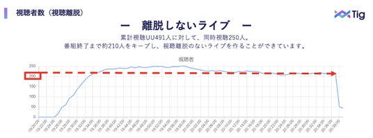 今回のTig LIVEでは、番組終了まで視聴者数が一定に保たれ、平均視聴継続時間も25分超となりました。また、全編視聴した方が24.5%となりました。
