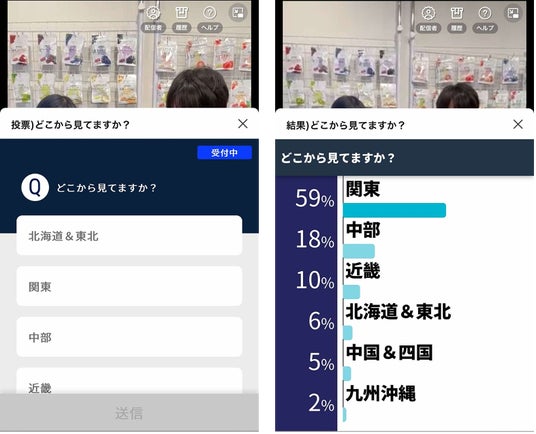 ・アンケートをリアルタイムで実施。ご当地グミの紹介につなげた<リアルタイムアンケート機能>