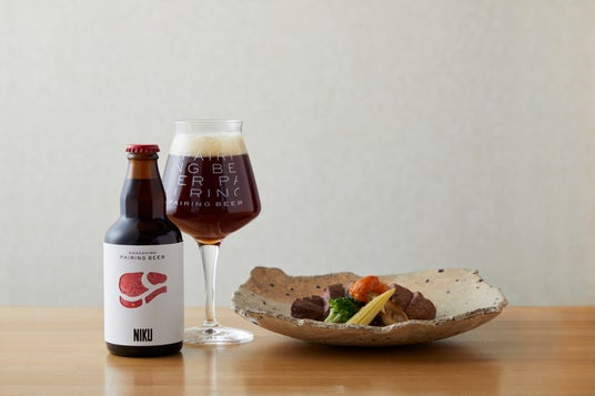 肉と相性が良いクラフトビールといえばIPAですが、焼き目のほどよい香ばしさや上質な脂から感じる肉の旨味を最大限に味わえるよう、リッチな味わいとコクを誇るアンバーエールに。大きめのグラスで13℃くらいまで温度を上げて飲めば、肉の旨味とビールのコク深さが相まって、より深い味わいを楽しめます。